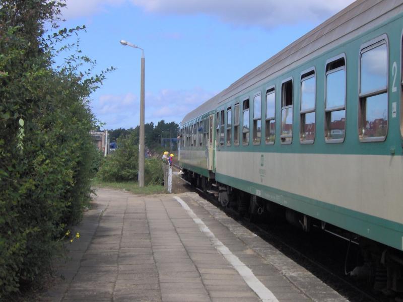 Długi skład ośmiowagonowy; nie mieści się w krawędziach peronu.
