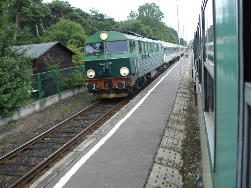 Opis ogólny: Układ torowy dwa tory główne oba znajdują się przy krawędziach peronowych peronu wyspowego. Budynek stacyjny na wykończeniu remontu. Stacja jest wyposażona w system rozgłoszeniowy ręczny oraz automatyczny, który aktualnie jest nieużywany. Budynek dworca posiada 2 tablice zbiorcze (Przyjazd/Odjazd). Sterowanie na stacji odbywa się zdalnie z nastawni dysponującej "W" znajdującej się we Władysławowie. Info: KN Ruch osobowy: do kilkunastu par pociągów w sezonie letnim (w tym dalekobieżne), częste krzyżowanie pociągów jadących do/z Helu. Ciekawostki: W zimie 2001/2002r. sztorm powalił kilka dużych drzew rosnących na terenie i w pobliżu stacji. Na wiosne 2003r. pomalowano budynek stacyjny na niesamowity seledynowy kolor Info: Tadeusz Domagalski. |