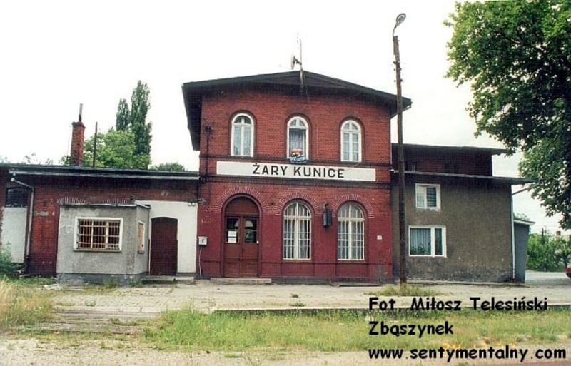 Kunice Żarskie. Na budynku przy dworcu pozostała dawna nazwa stacji.