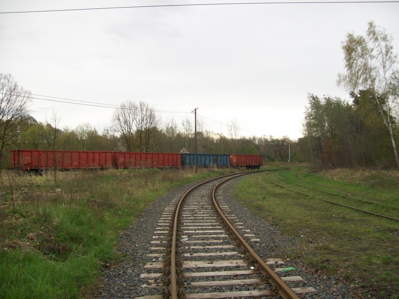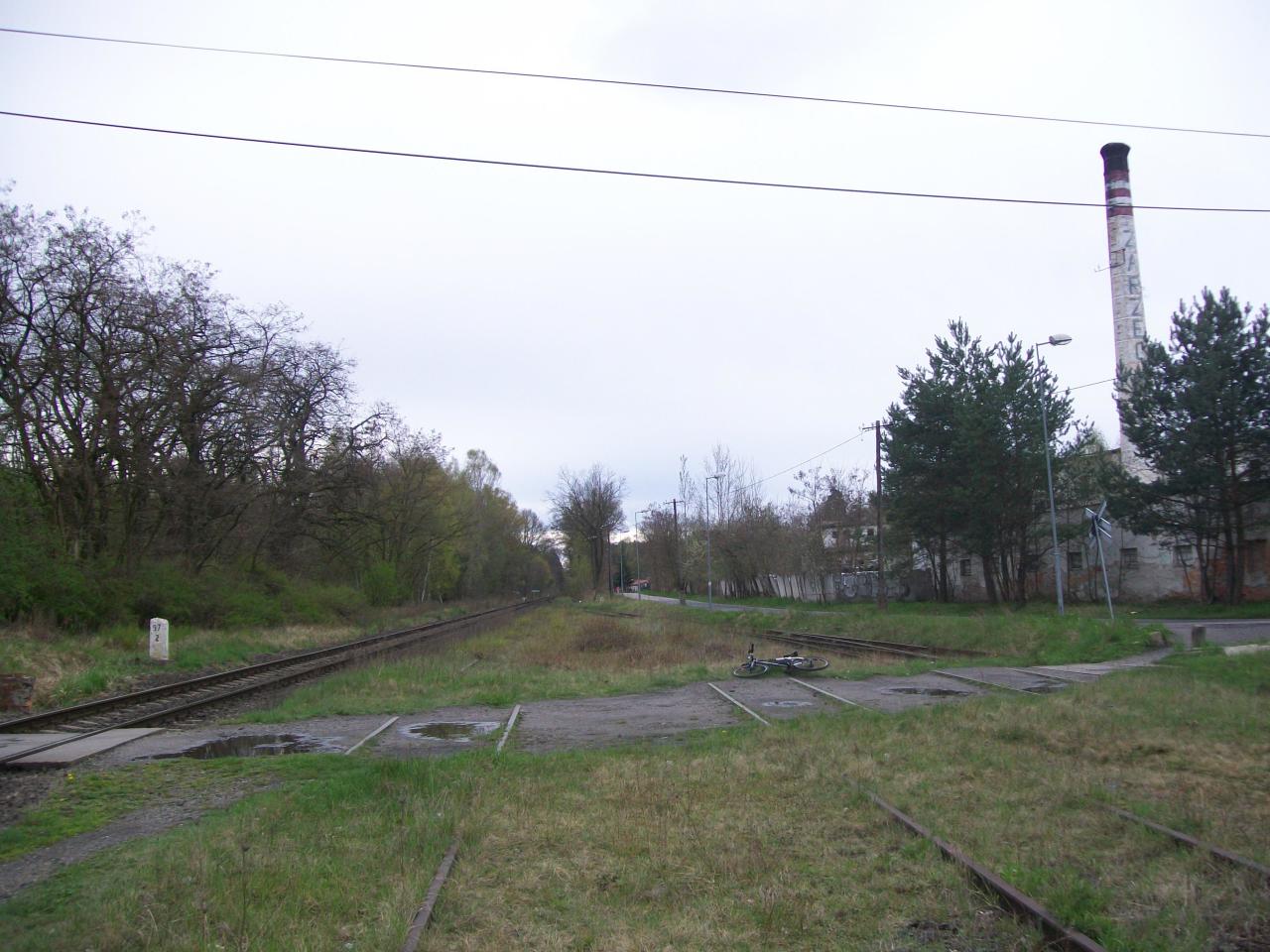 Bocznica do huty szkła Vitrosilicon - widok w kierunku dawnej stacji Kunice. Z lewej strony pozostałości po rampie ładunkowej.