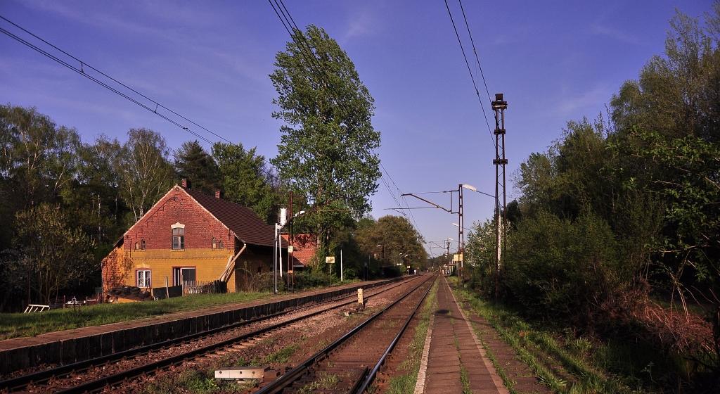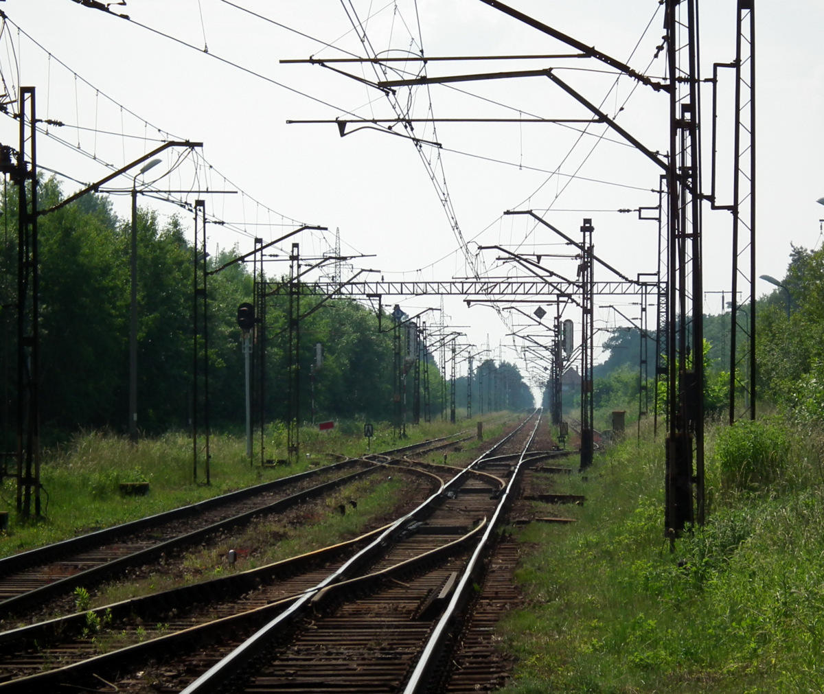 Jeszcze jeden widok w stronę Kędzierzyna Koźla. Zaraz za peronem liczba torów zwiększa sie do czterech. A ten po lewej prowadzi do lasu(?).