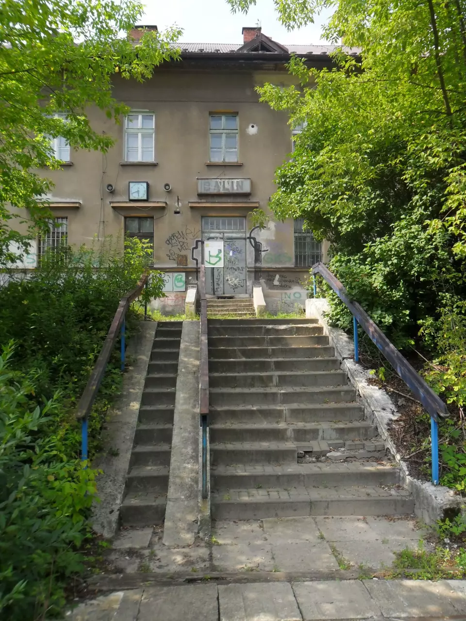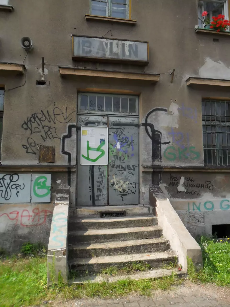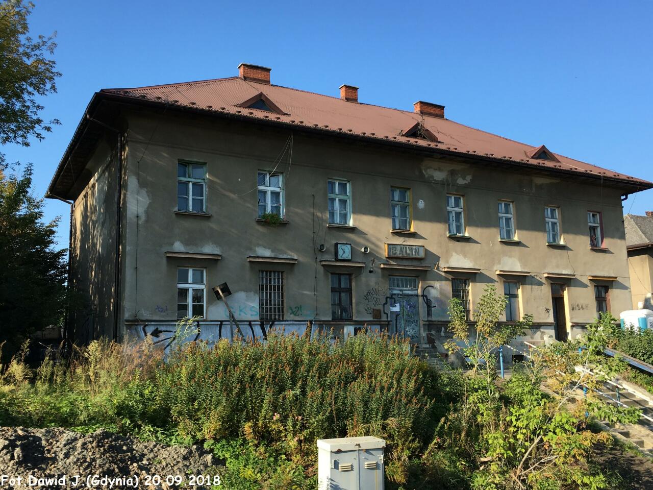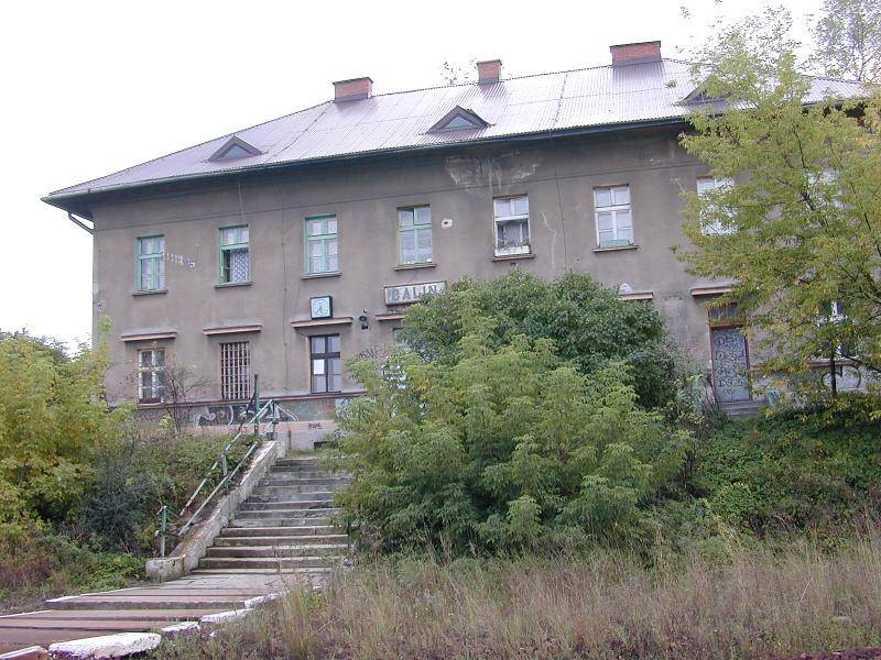 Zamknięty i częściowo zamieszkały budynek dworca stacji Balin. Widok od strony peronów; w prawo Jaworzno Szczakowa, w lewo Trzebinia/Kraków.