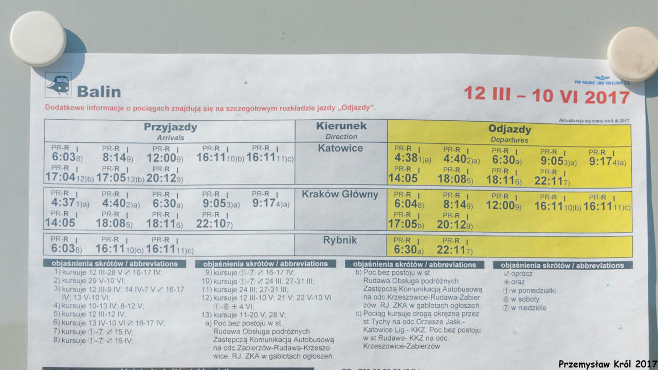 Rozkład jazdy ze stacji Balin, najdalej bez przesiadki można dojechać do Rybnika.