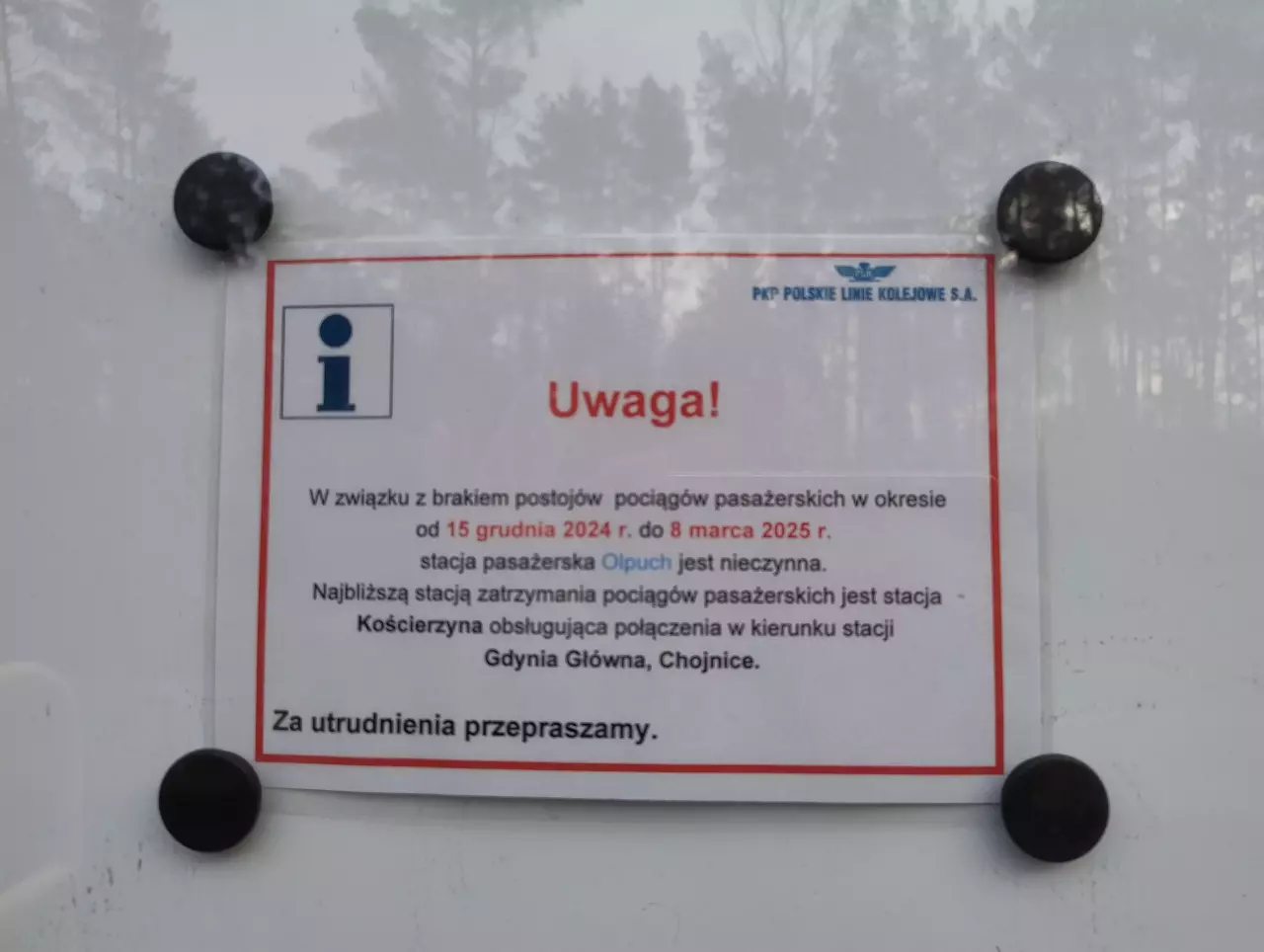 | Brak postoju pociągów w okresie od 14.06.2020 do 20.08.2020. (info od: Mateusz Kisiel 2020-07-09) |