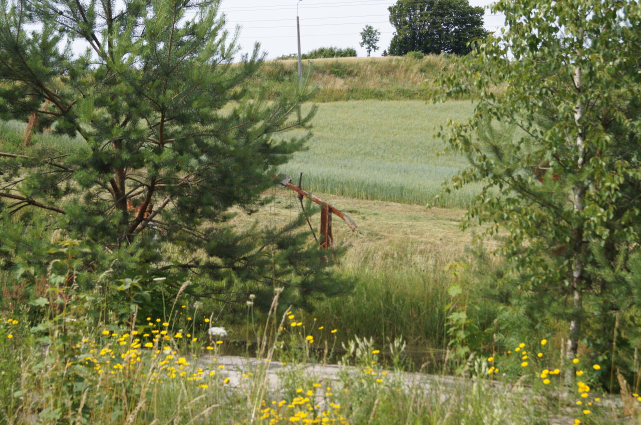 Miechucino. Drzewostan całkiem całkiem… ale to chyba nie jest właściwe miejsce na tego typu "atrakcje". Na wprost żuraw wodny i jeden z semaforów. Widok w kierunku Lęborka.