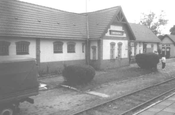 Budynek dworca od strony peronów: w lewo Kartuzy, w prawo Lębork. W przybudówce do dworca, na parterze mieściła się nastawnia dysponująca.