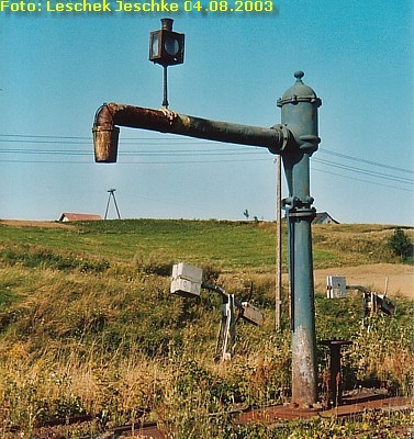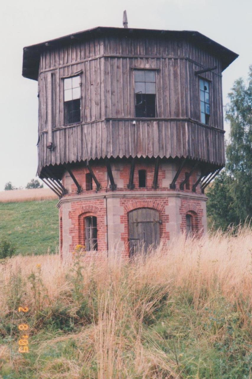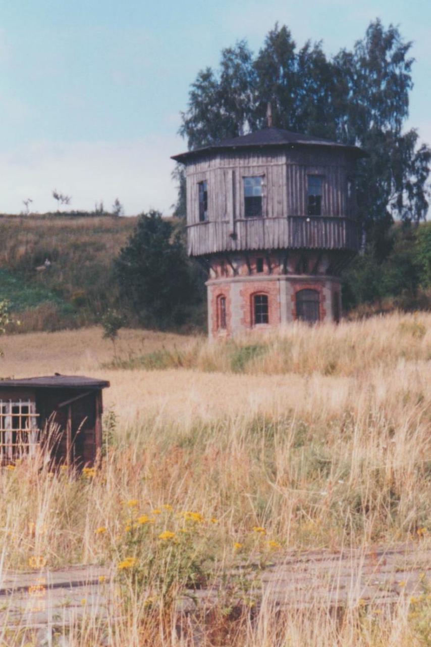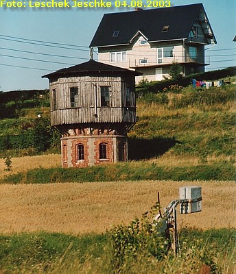 Miechucino. Kolejowa wieża wodna od strony toru. W prawo Kartuzy, w lewo Lębork.
