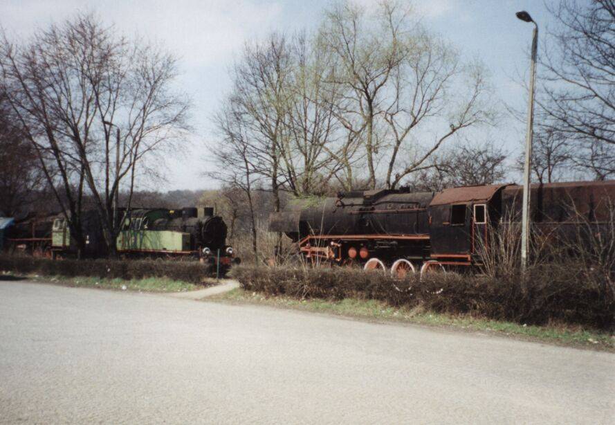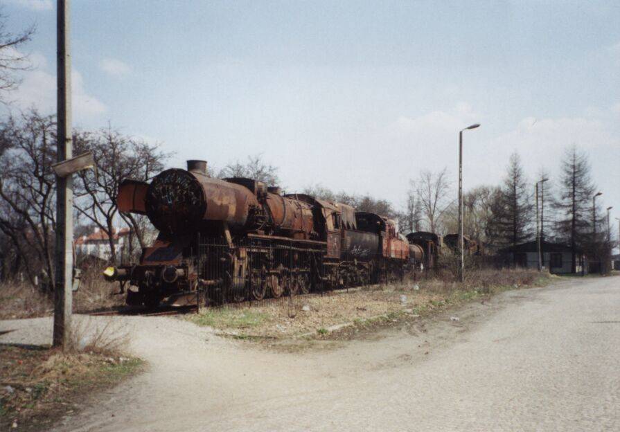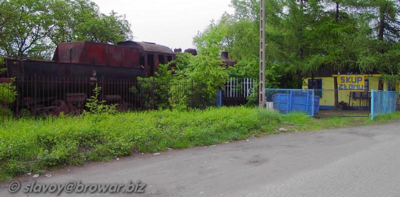 Sznur starych parowozów przy dworcu kończy się przy posesji ze złowieszczym szyldem.