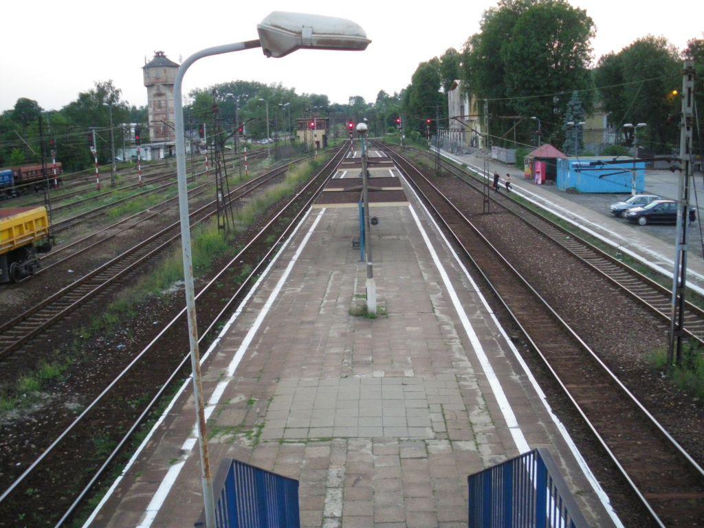 Widok na peron z kładki dla pieszych w kierunku Trzebini.