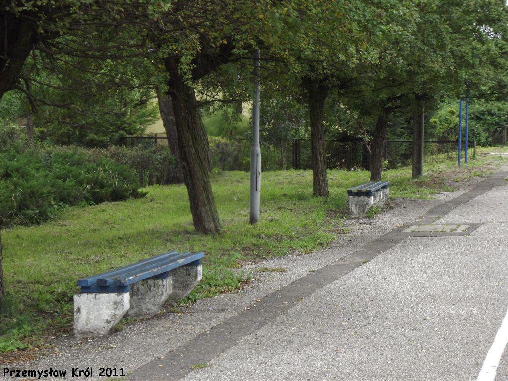 Ławki na stacji przy peronie pierwszym