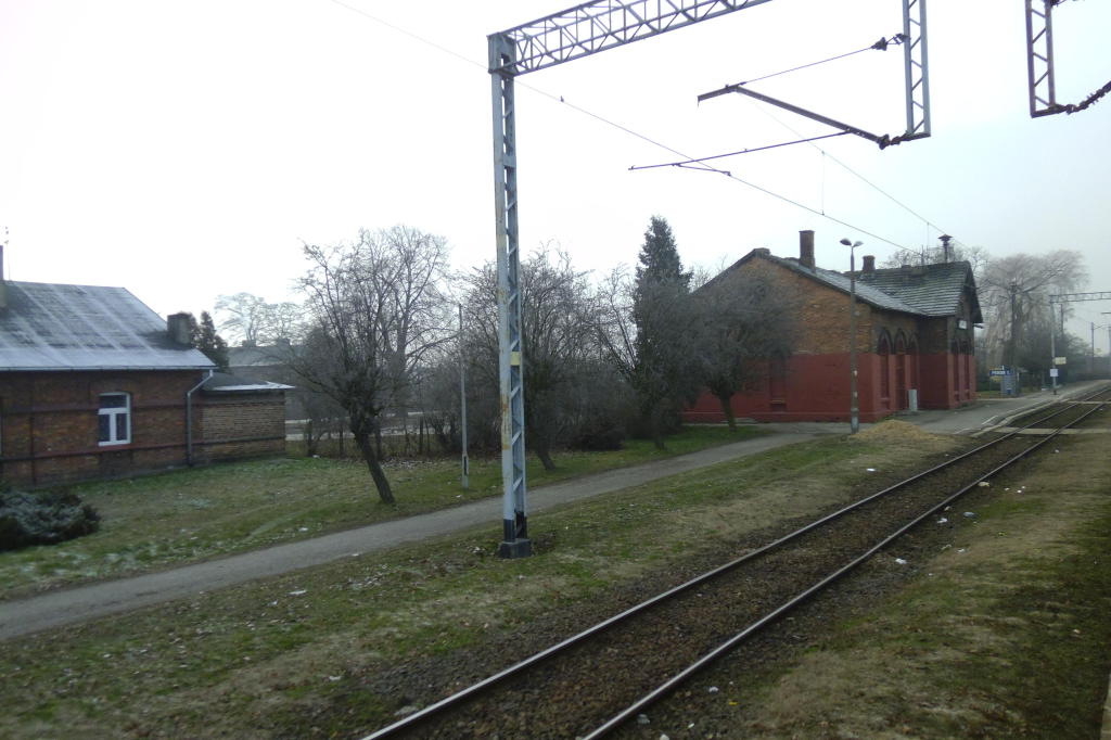 Widok z bocznicy (za stacją) w stronę Łodzi.