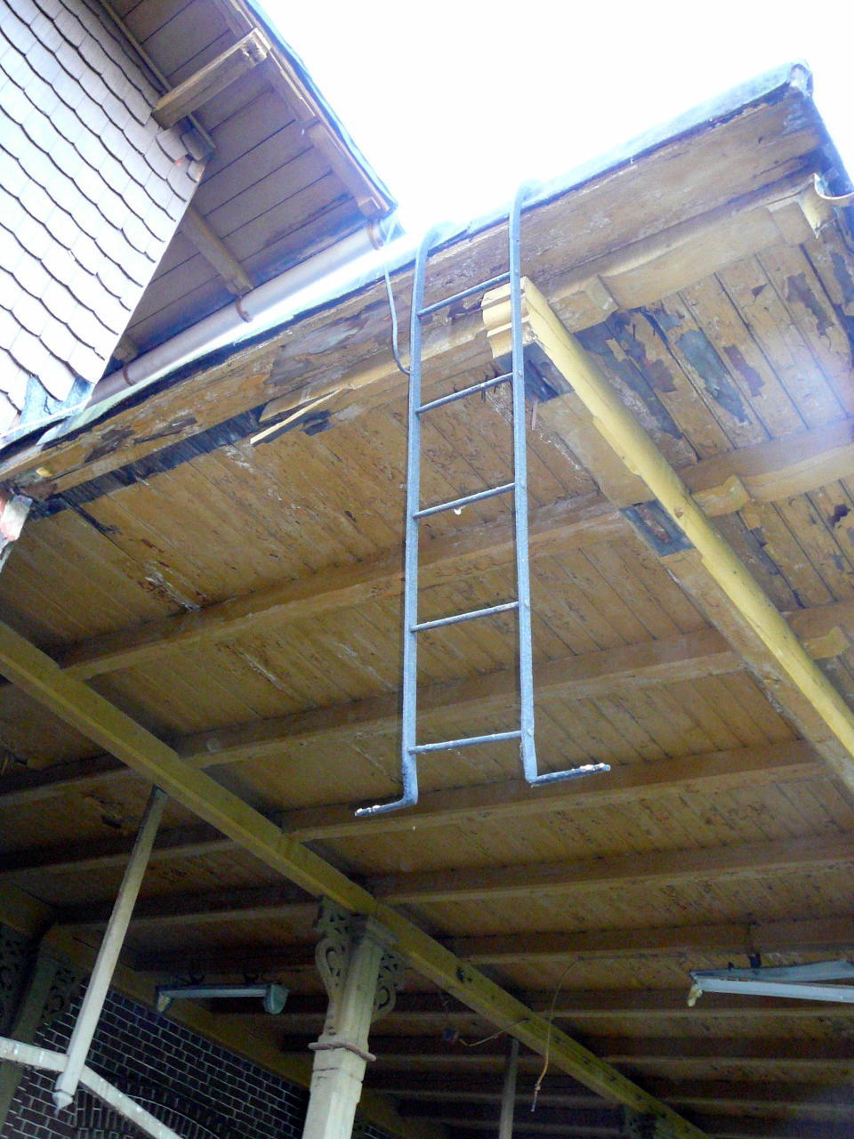 Mirsk. Drabina do nieba, nie na wiatę przy budynku dworca.