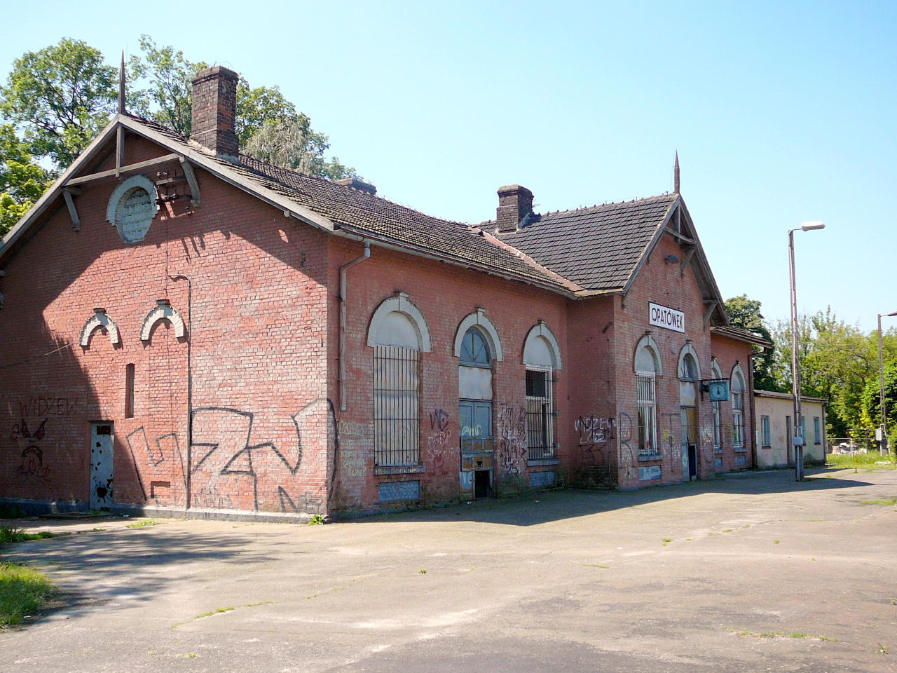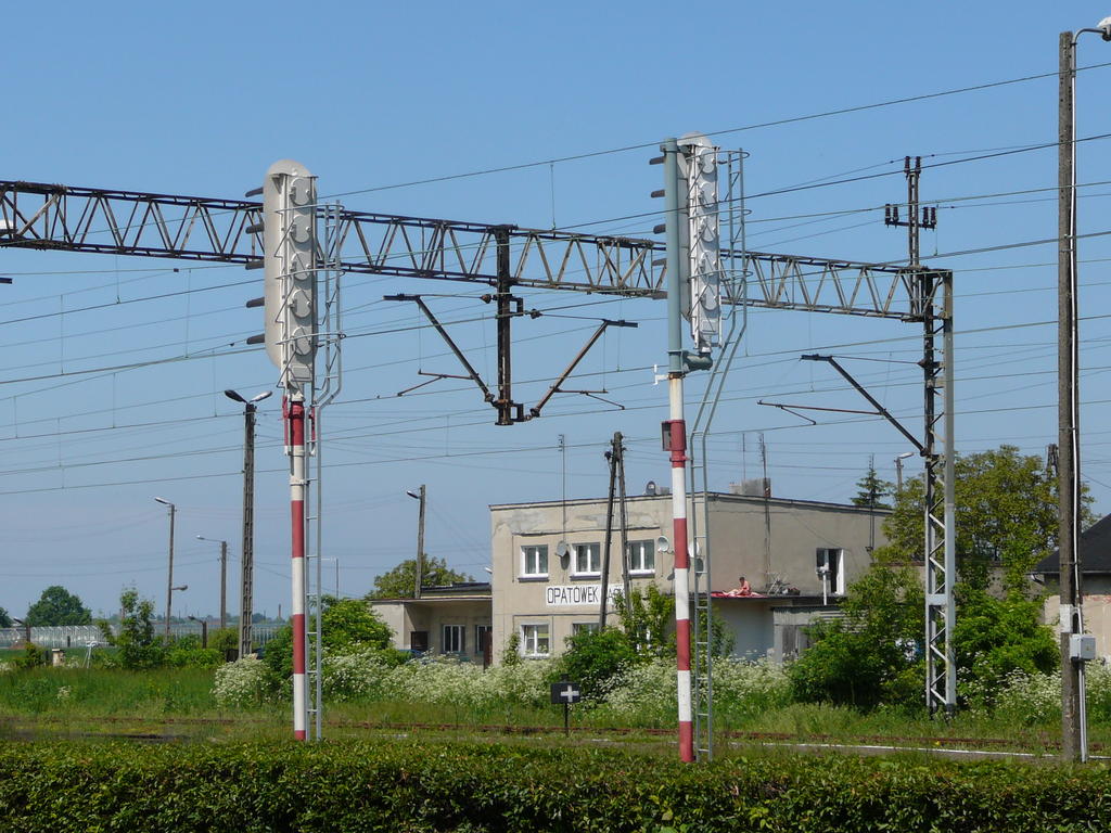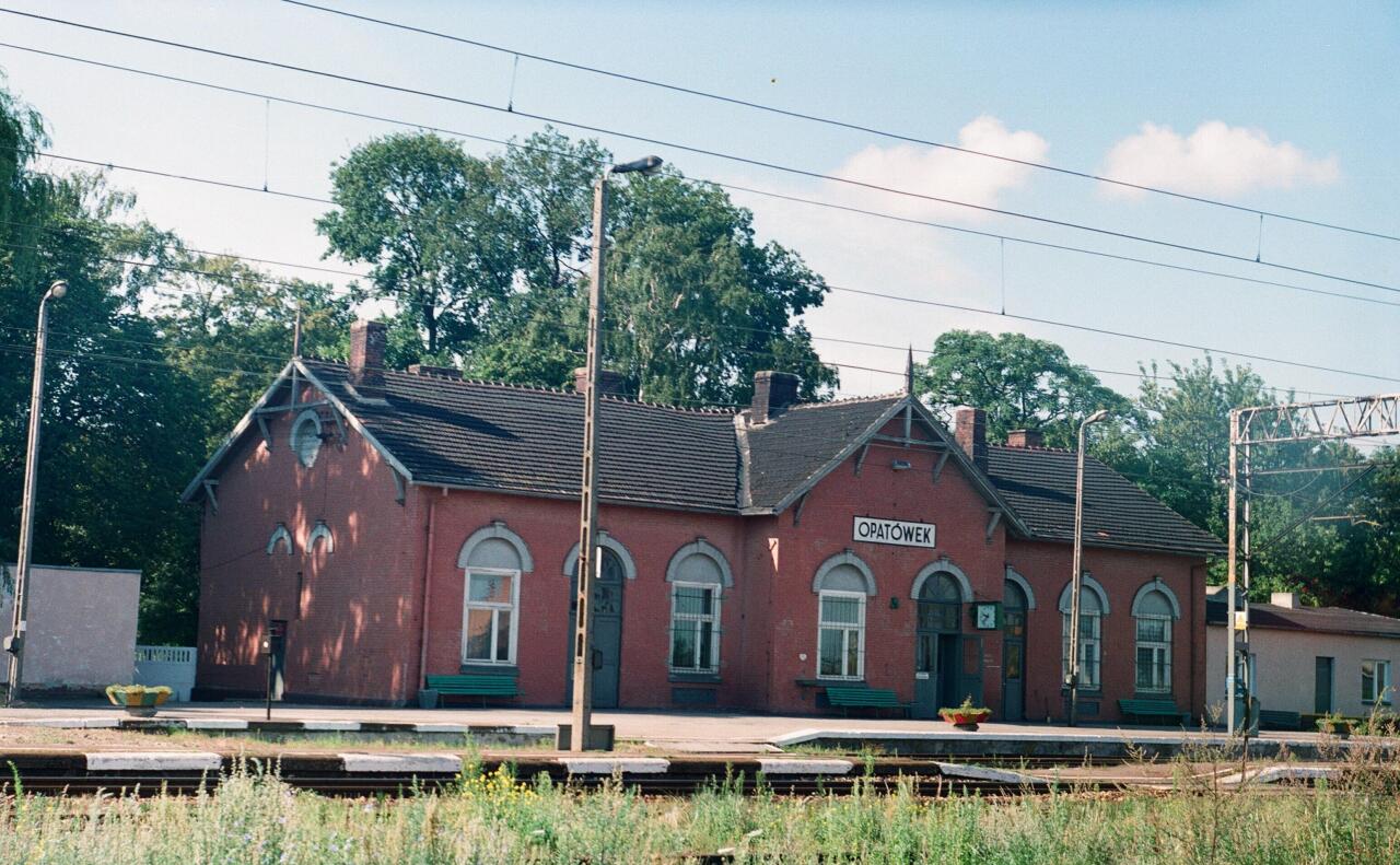 Stacja Opatówek - budynek stacyjny, w lewo - kierunek Łódź Kaliska, w prawo - kierunek Ostrów Wielkopolski (Tuplice - Granica Państwa).