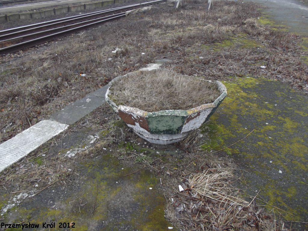 Kwietnik w którym kwitnie ziemia na stacji w Opatówku.
