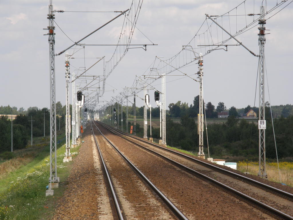 Tory szlakowe. W oddali semafory SBL. Widok w kierunku Skierniewic. 89,5 km.