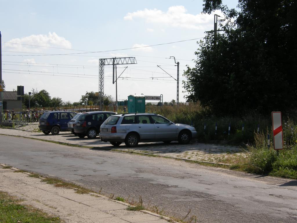 Przejazd drogowy na pograniczu Bonarowa, Krosnowej i Winnej Góry. Po prawej za torami parking w Krosnowej. Po prawej poza kadrem parking w Bonarowie. W lewo Skierniewice, w prawo Koluszki. 89,8 km.