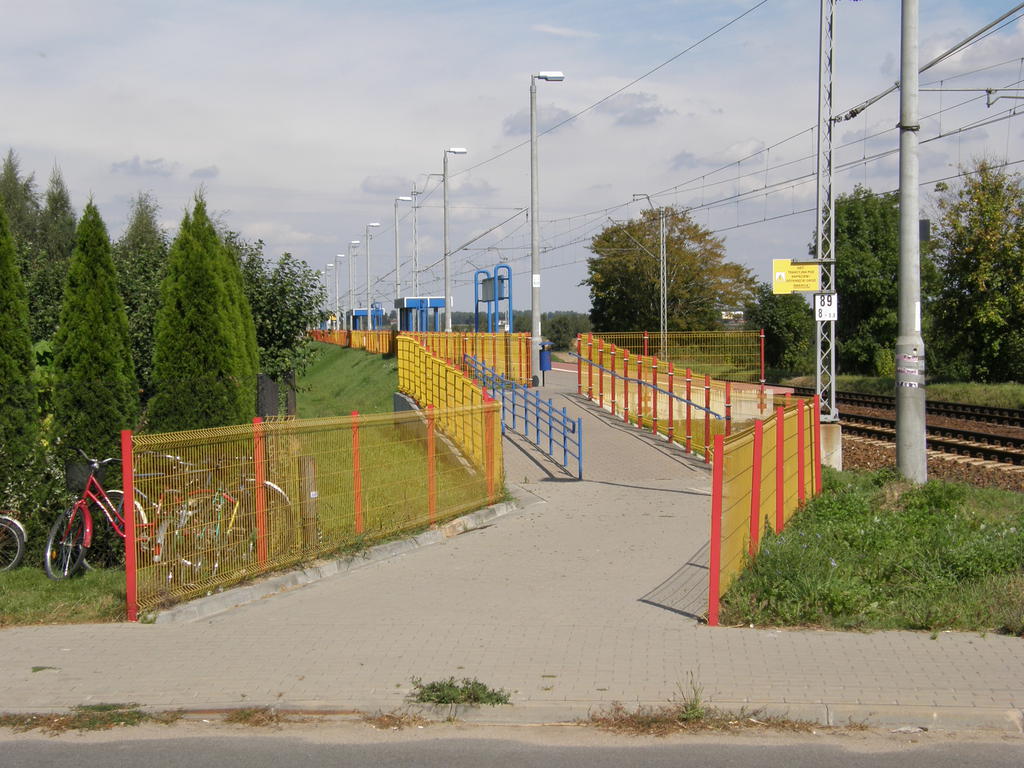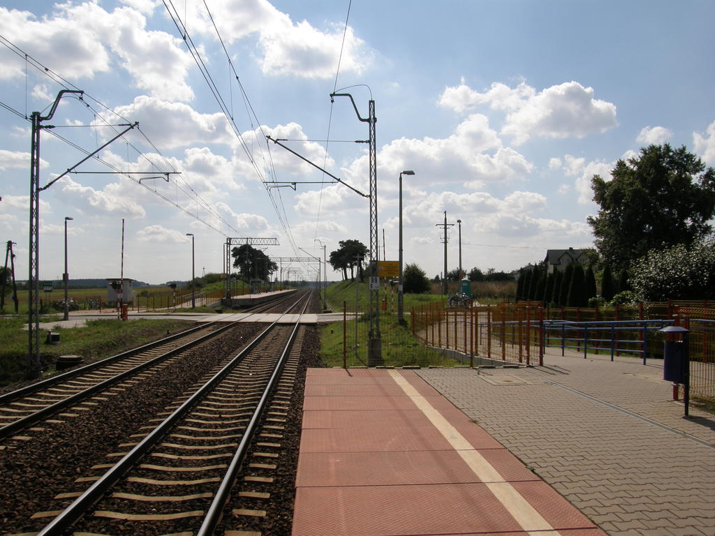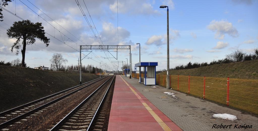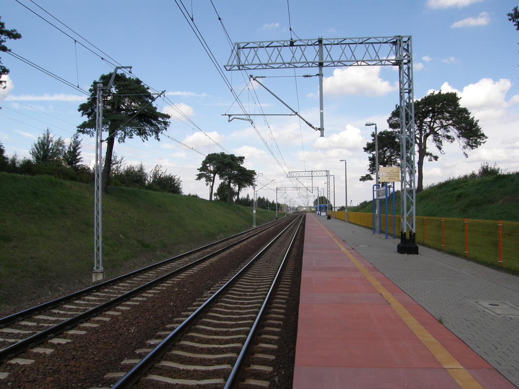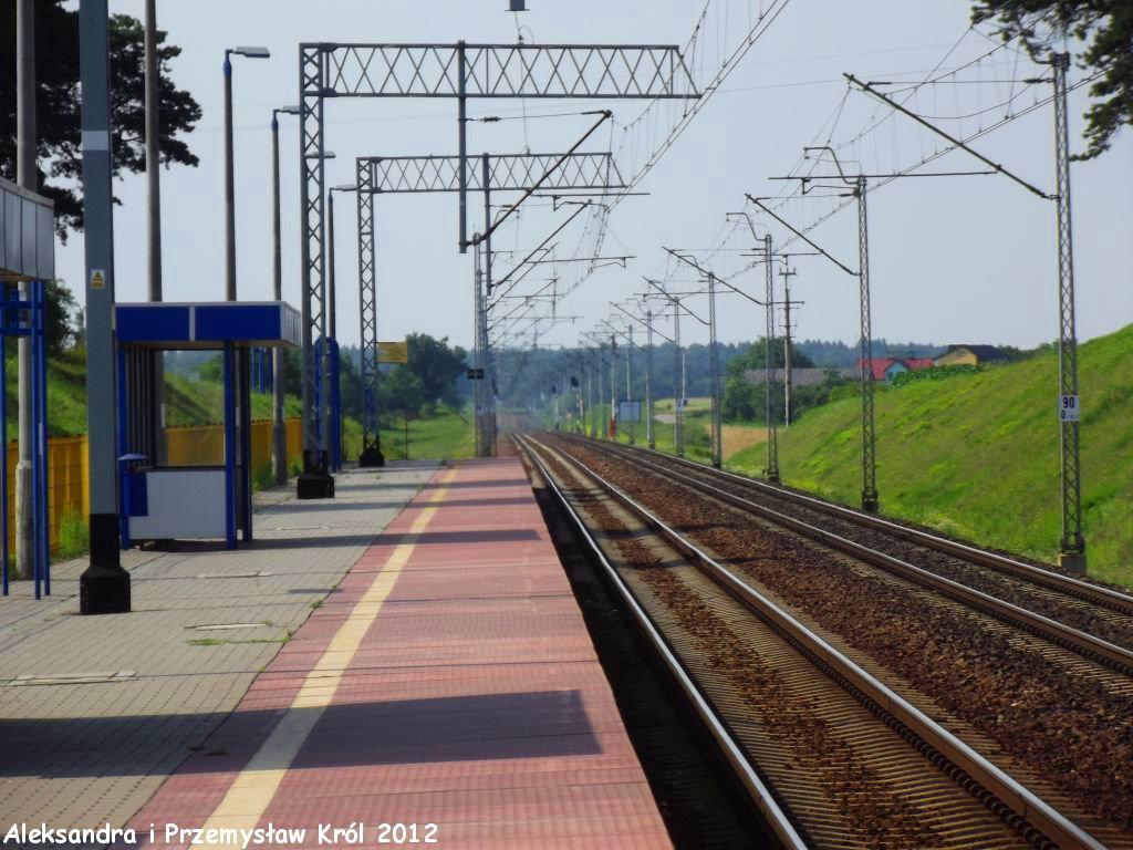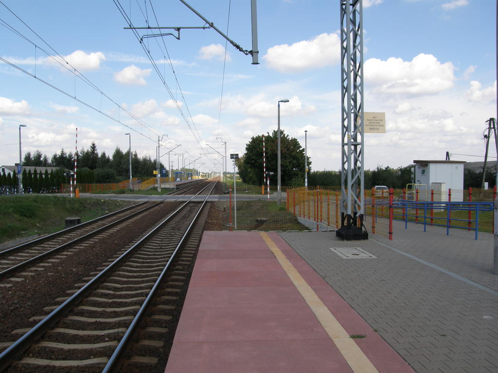 Wejście. Peron dla pociągów w kierunku Koluszek. Widok w kierunku Skierniewic. 89,8 km.
