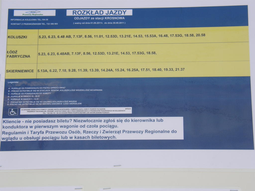 Rozkład jazy ważny od 1-09-2011 do 30-09-2011. Najdłuższa relacja - Łódź Fabryczna 43 km.