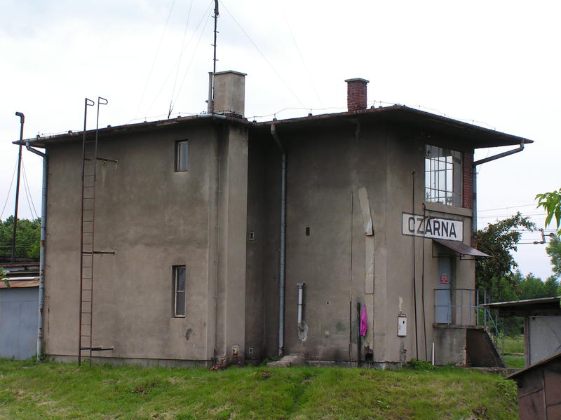 Czarna Tarnowska w trakcie przebudowy. Rozebrany tor nr 1. W krzakach (po prawej stronie) widoczny tor nr 3. W głębi widoczny peron (zlikwidowany w trakcie przebudowy) oraz przejście przez tory. Ruch odbywał się po torze nr 2 oraz widocznym, po lewej stronie, torze nr 4.