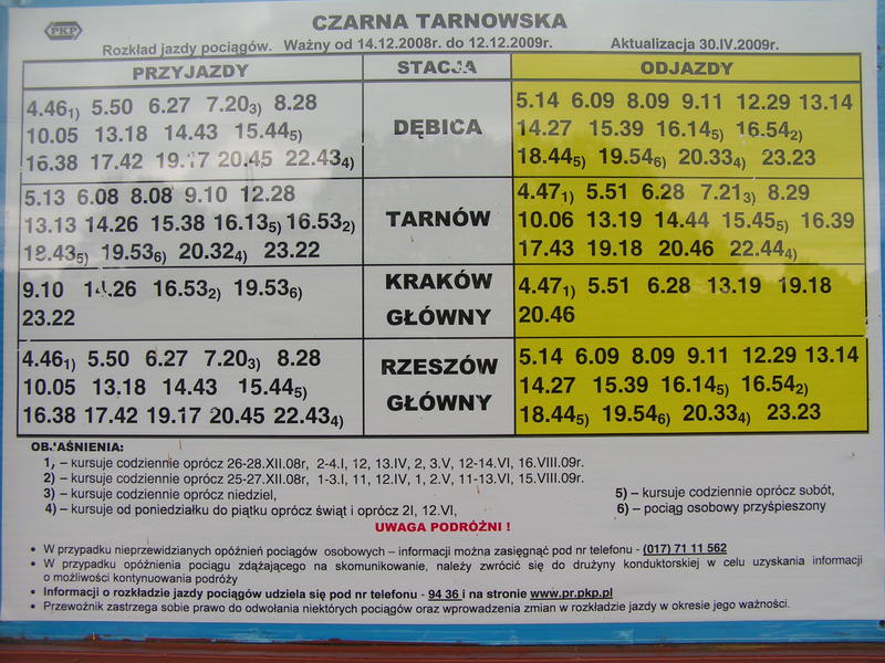 Rozkład jazdy ważny od 14-12-2008 do 12-12-2009.