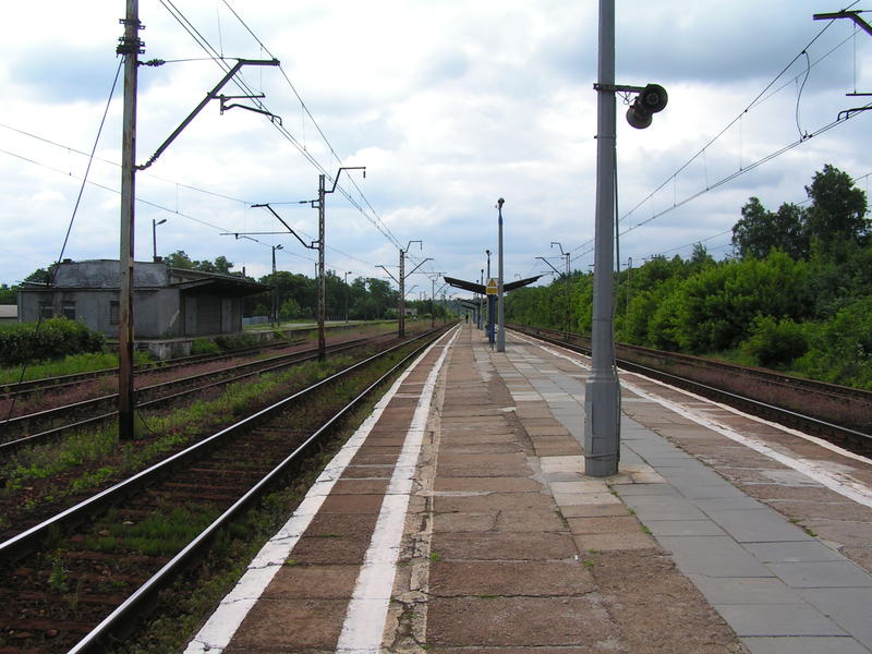 Jedyny peron, wyspowy. Po prawej rampa o długości ok. 300 m. Widok w stronę Tarnowa.