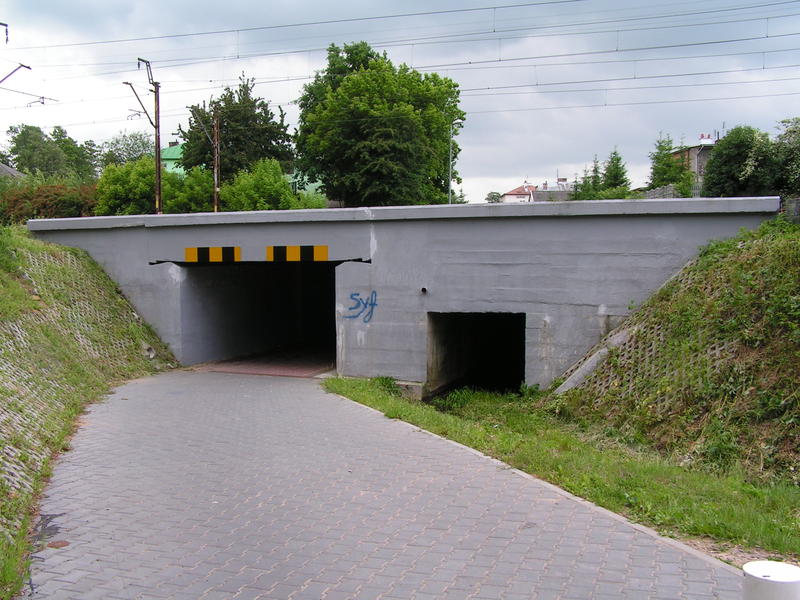 Przepust i przejście piesze w ciągu ulicy Zawiszy Czarnego. W lewo Rzeszów, w prawo Tarnów.