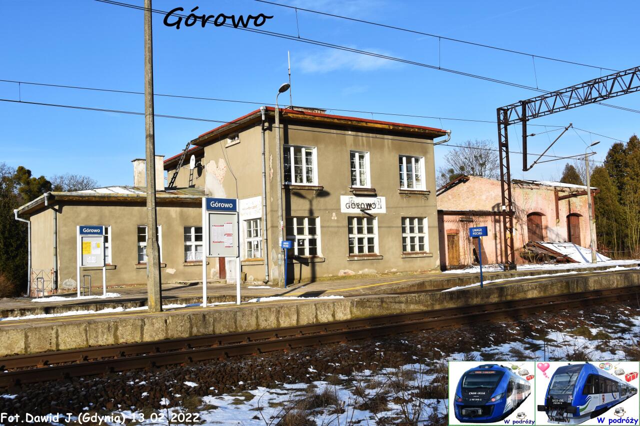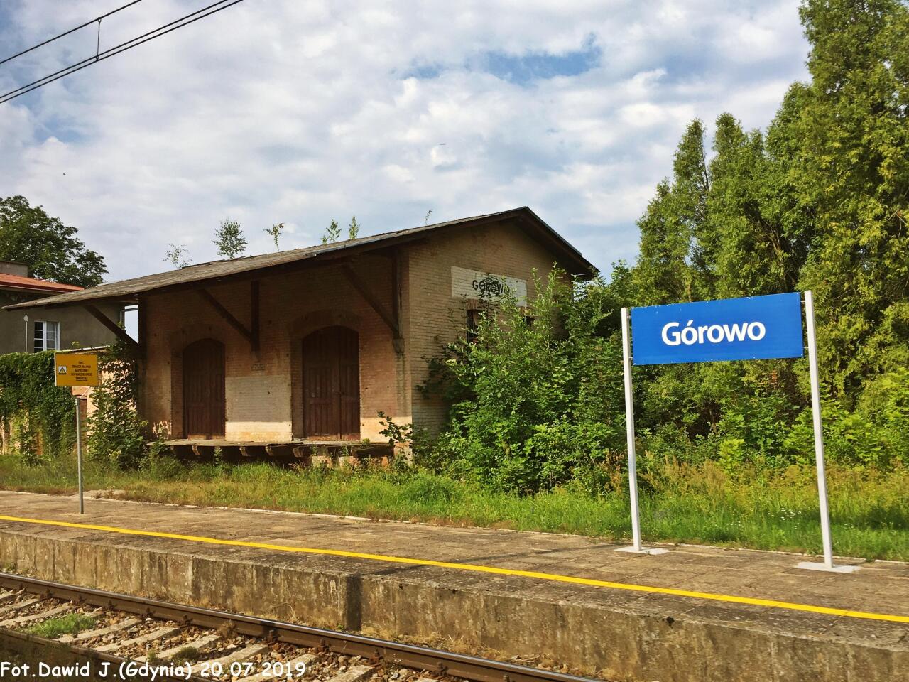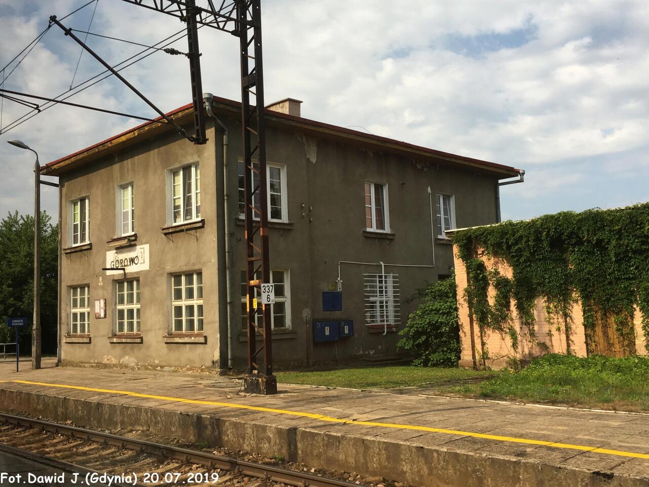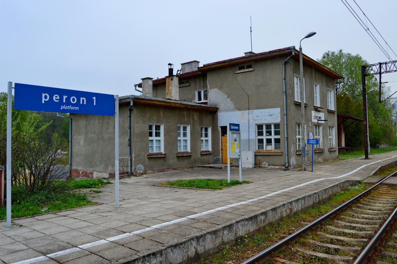 Górowo, km 337,5. Widok na perony i budynek dworca w kierunku Korsz.