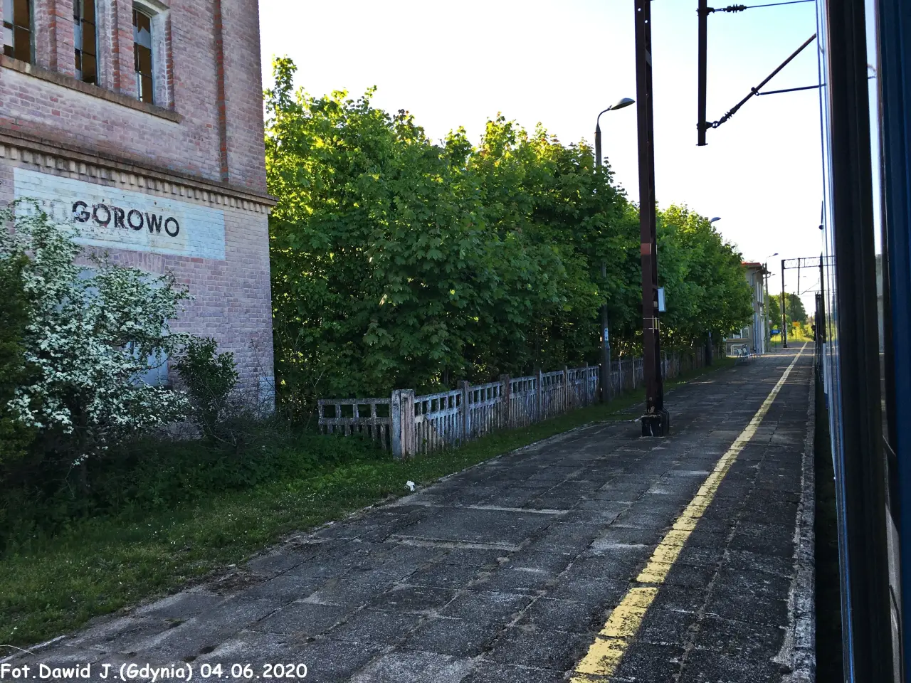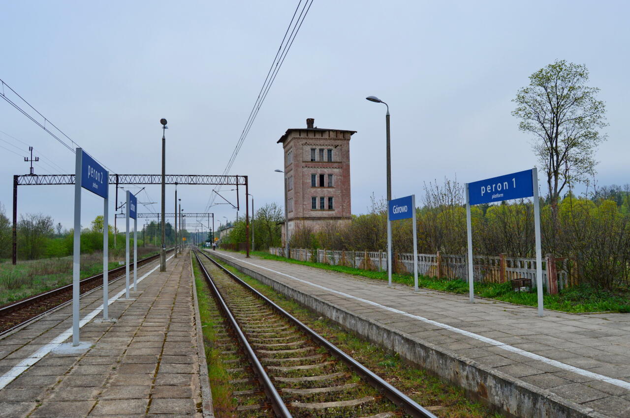 Górowo. Widok z peronu 2 w kierunku Korsz. Po lewej stronie peron 1.