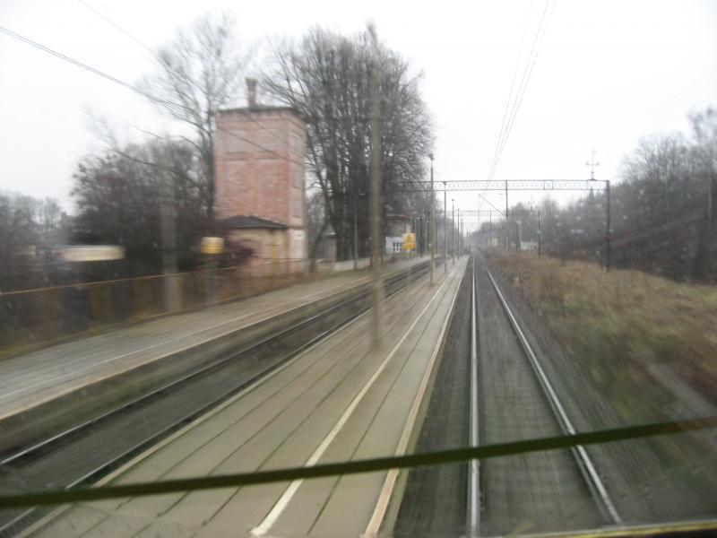 Górowo, km 337,5. Widok na perony i wieżę wodną w kierunku Korsz.
