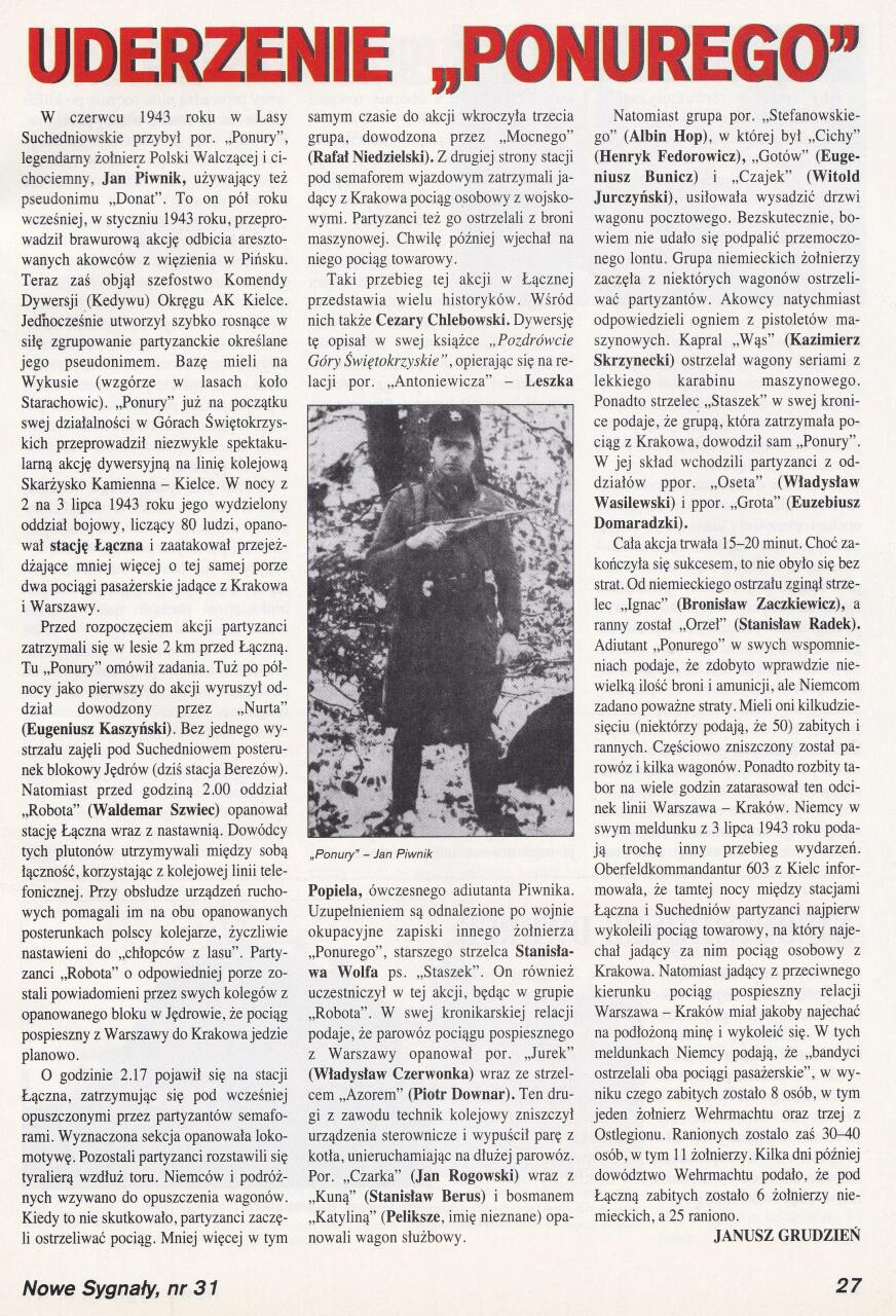 Skan artykułu z Nowych Sygnałów nr 31/98 o akcji partyzanckiej na stacji w Łącznej.