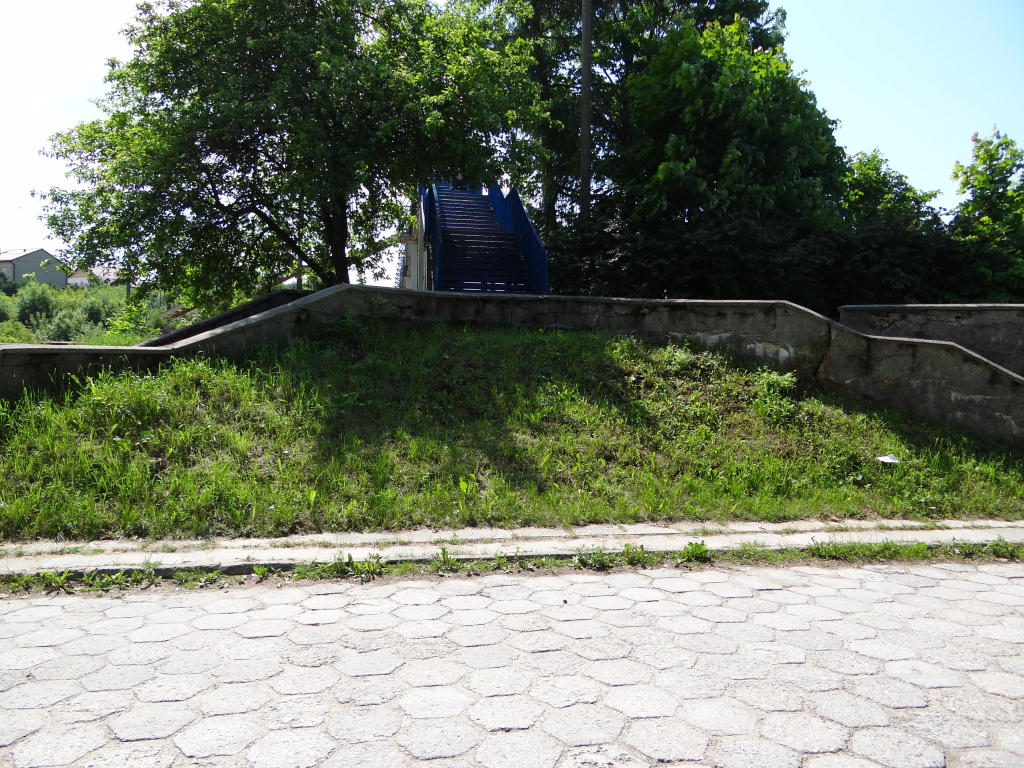 Kładka. Droga dojazdowa do budynku dworcowego. Widok w kierunku Skarżyska-Kamiennej. 160,2 km.