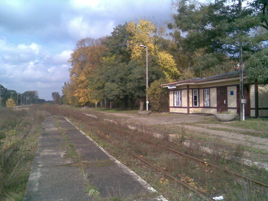 Dworzec PKP na stacji Uhrusk (miejscowość Wola Uhruska) od strony torów. W lewo Sobibór i Włodawa, w prawo Chełm.