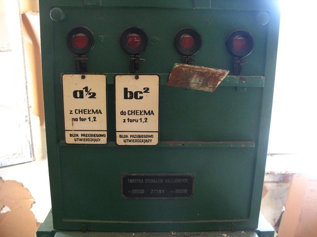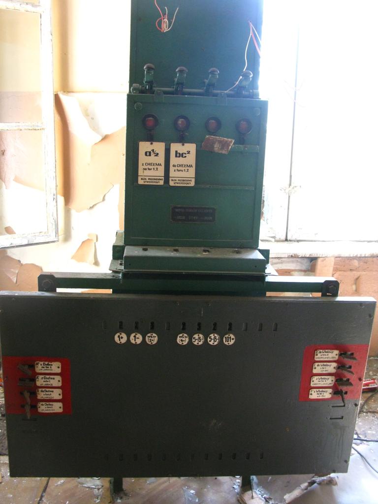 Uhrusk. Zdewastowane wnętrze nastawni znajdującej się w budynku dworca.