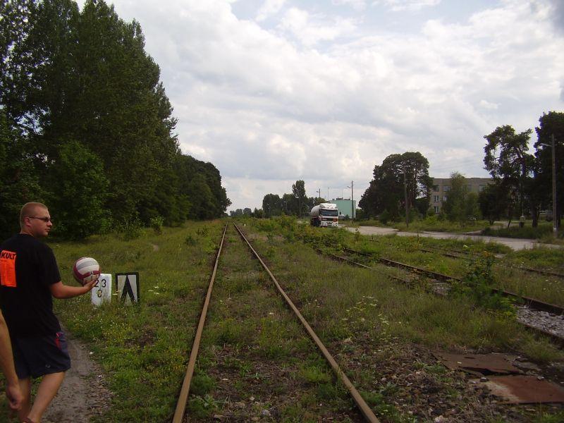 Dawne magazyny GS-u naprzeciw dworca PKP Uhrusk w Woli Uhruskiej (za plecami). W lewo Chełm, w prawo Włodawa.