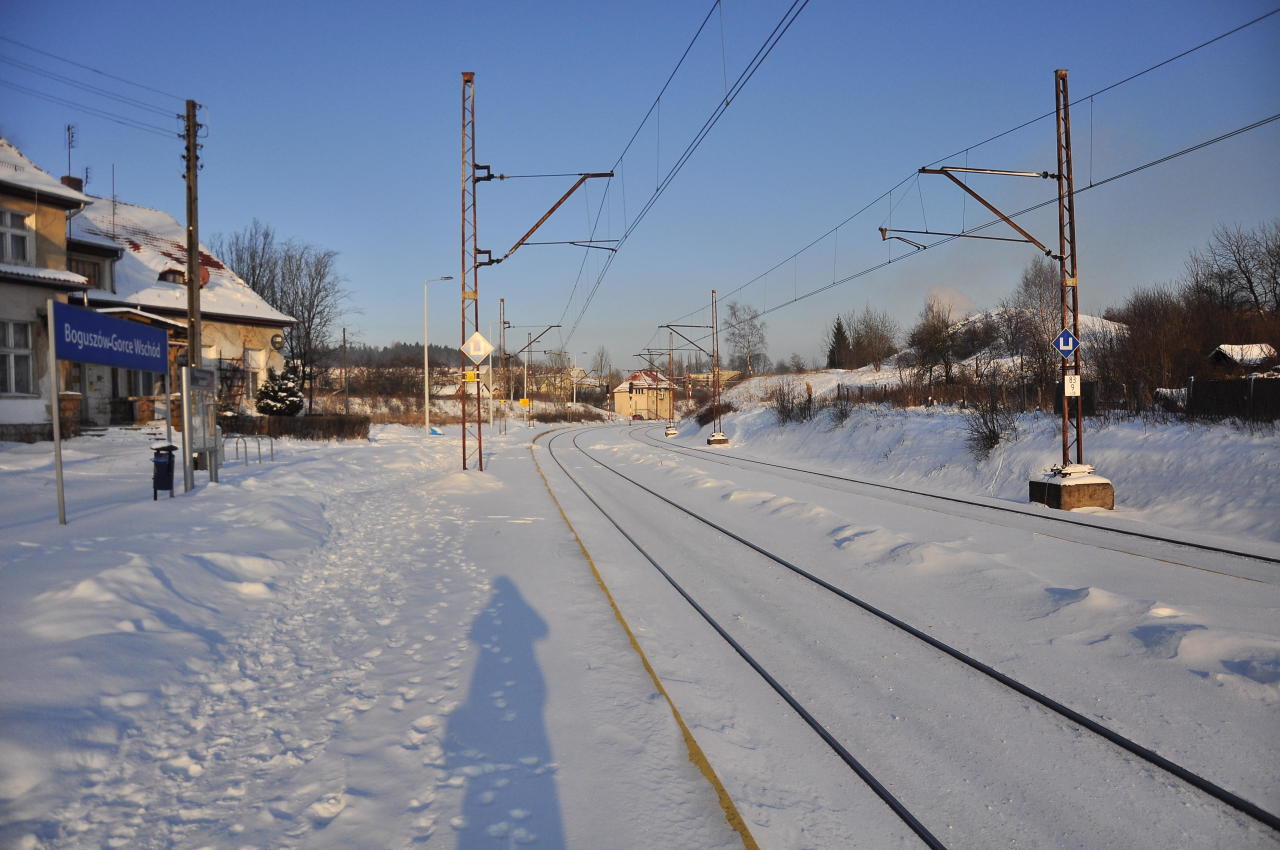 Po lewej stronie widać dawny wylot linii ze Szczawienka na stację Boguszów-Gorce Wschód. Po prawej linia Wrocław - Jelenia Góra. Widok w kierunku wschodnim.