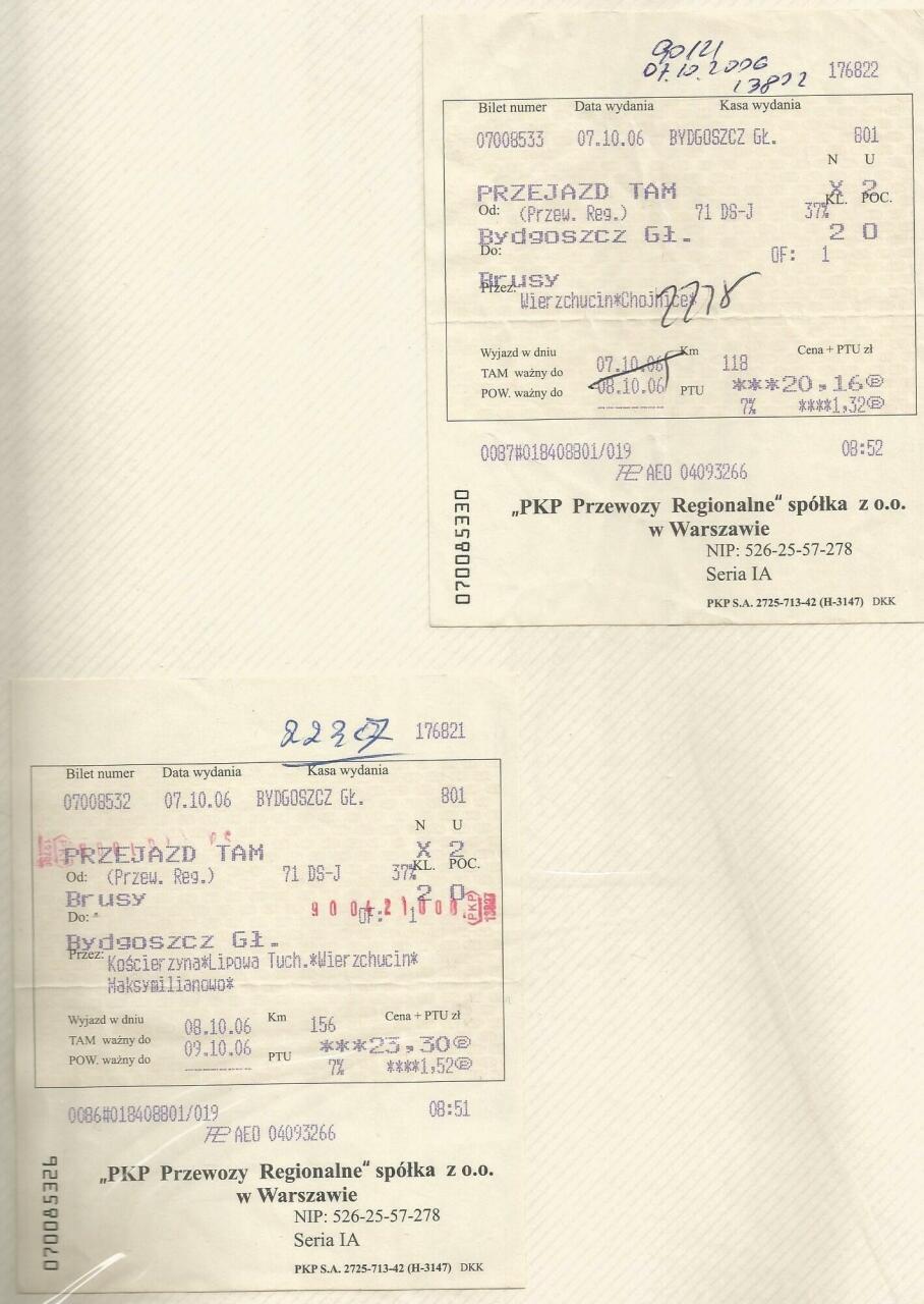 Bilety z Bydgoszczy do Brus i z Brus do Bydgoszczy.