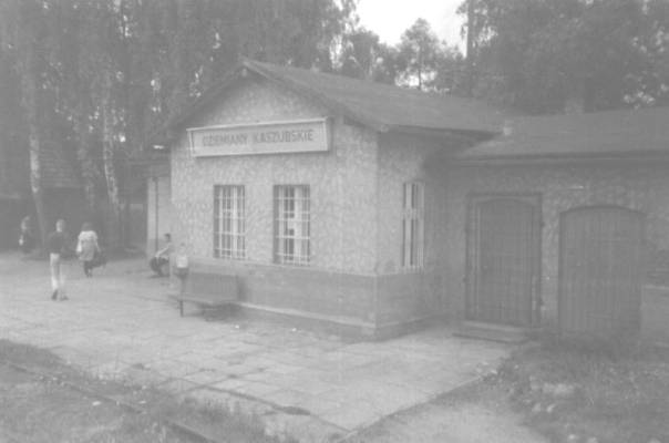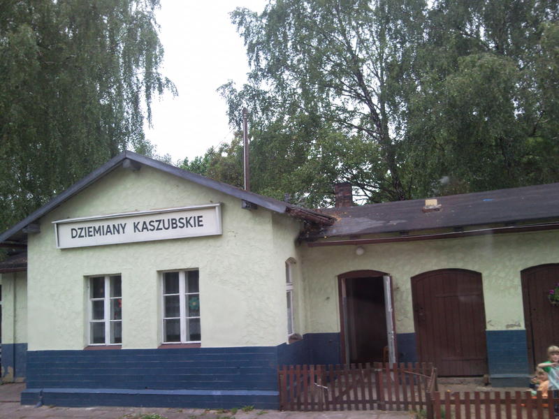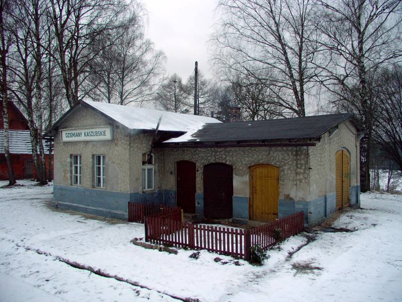 Dziemiany Kaszubskie, budynek dworca od strony peronu. W lewo Chojnice, w prawo Lipusz/Kościerzyna.