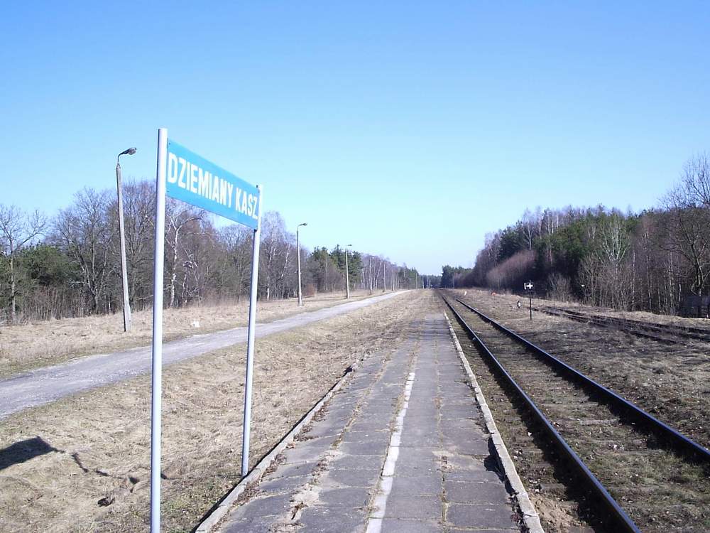 Dziemiany Kaszubskie, widok w kierunku Lipusza/Kościerzyny. Z prawej puste miejsce po rozebranym torze dodatkowym.