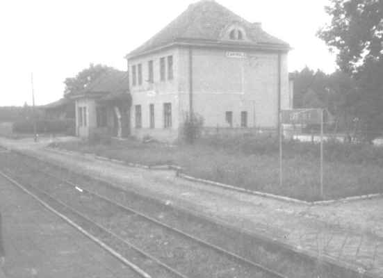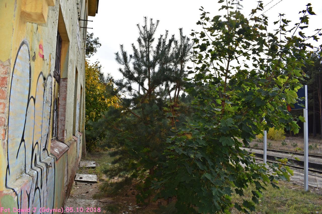 Budynek WC widoczny od strony torów. W lewo Lipowa Tucholska/Gdynia Główna, w prawo Wierzchucin/Bydgoszcz Główna.