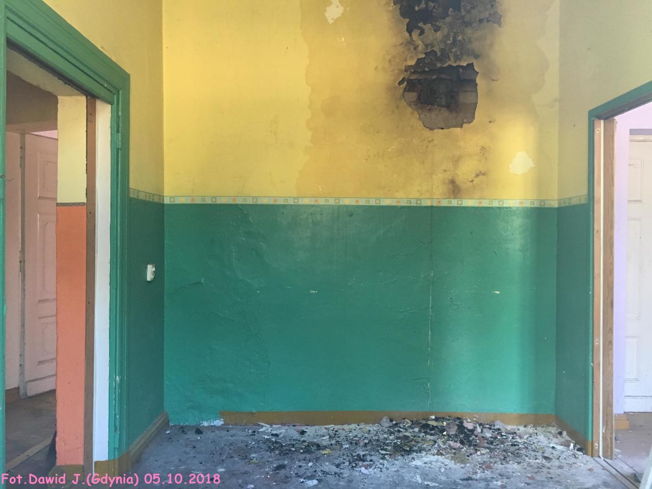 Wnętrze budynku dworcowego, części mieszkalnej. Przerażający stan z powodu zalania i jego skutków.