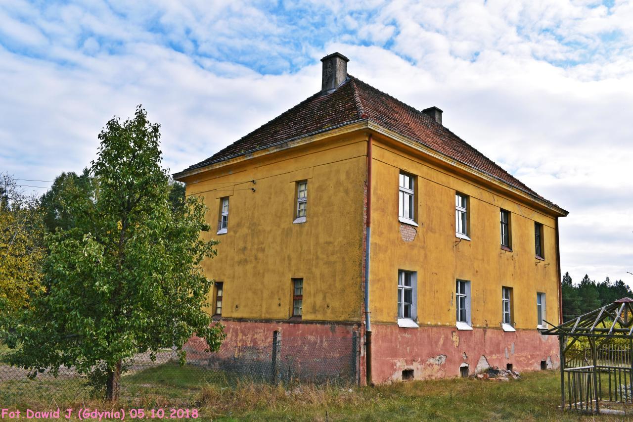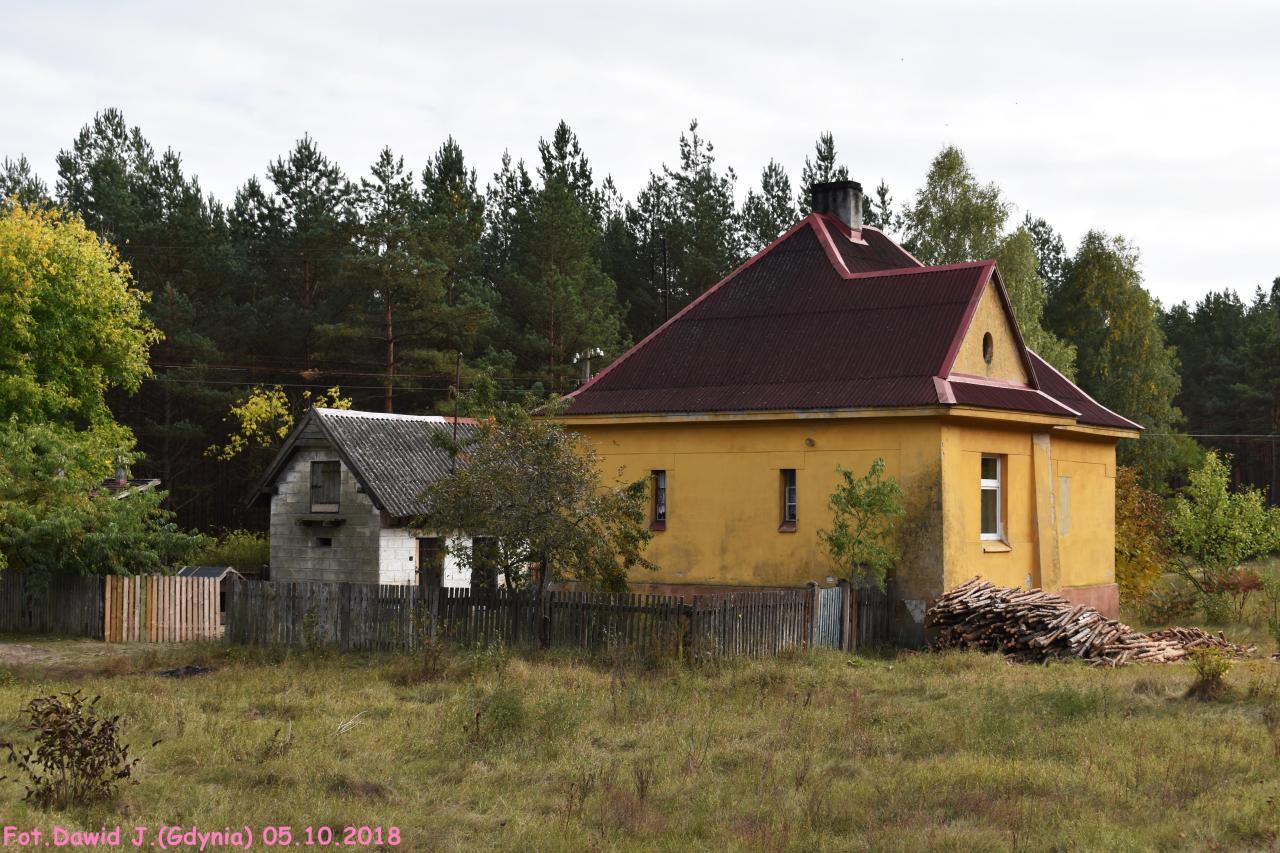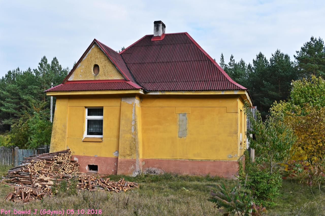 Kolejowy budynek mieszkalny (Brzozowe Błota 12) widoczny od strony torów. W lewo Lipowa Tucholska/Gdynia Główna, w prawo Wierzchucin/Bydgoszcz Główna.
