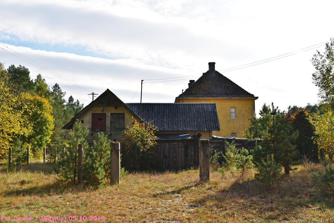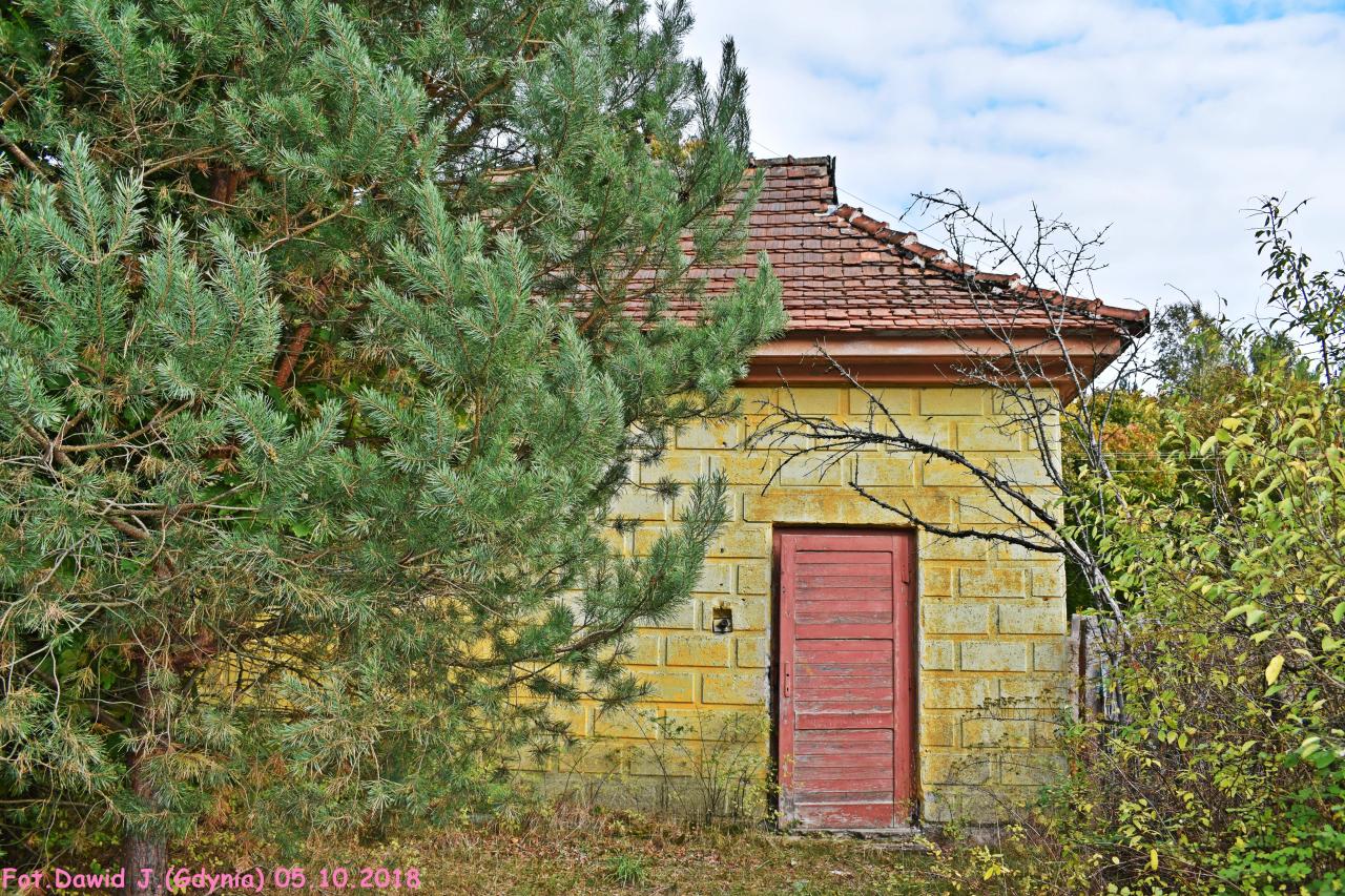 Budynek gospodarczy znajdujący się przy kolejowym budynku mieszkalnym (Brzozowe Błota 10). W tle znajduje się budynek dworcowy. Widok w kierunku Lipowej Tucholskiej/Gdyni Głównej.