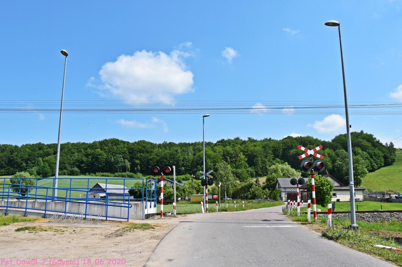 Przejazd kolejowy znajdujący się przy wyjściu z peronu (z lewej). W lewo Żukowo/Gdynia Główna, w prawo Kościerzyna/Bydgoszcz Główna.