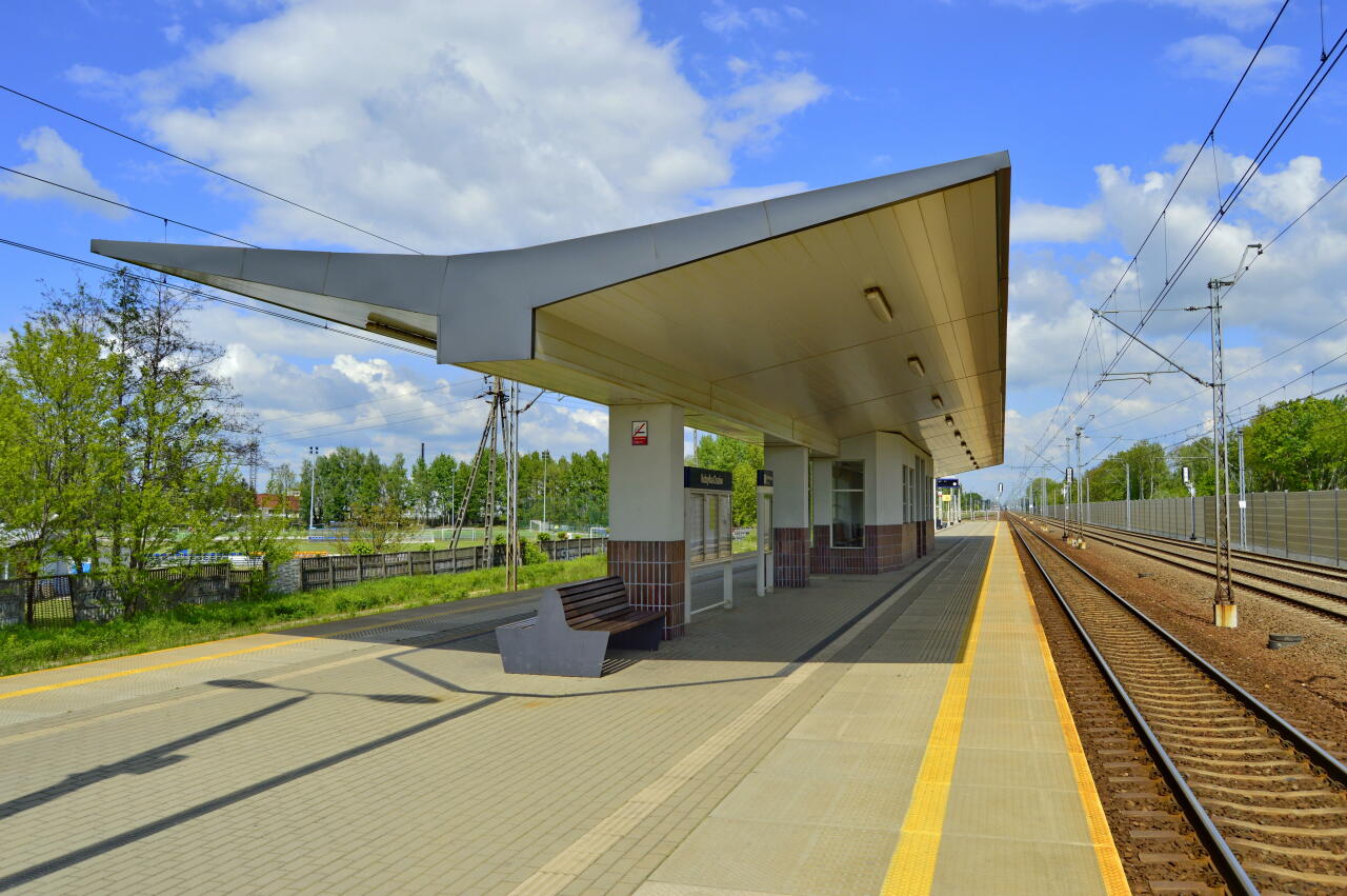 | budynki dworcowe: | Po środku peronu znajduje się budynek mieszczący kasę biletową i poczekalnię. Używany zgodnie z przeznaczeniem. | |