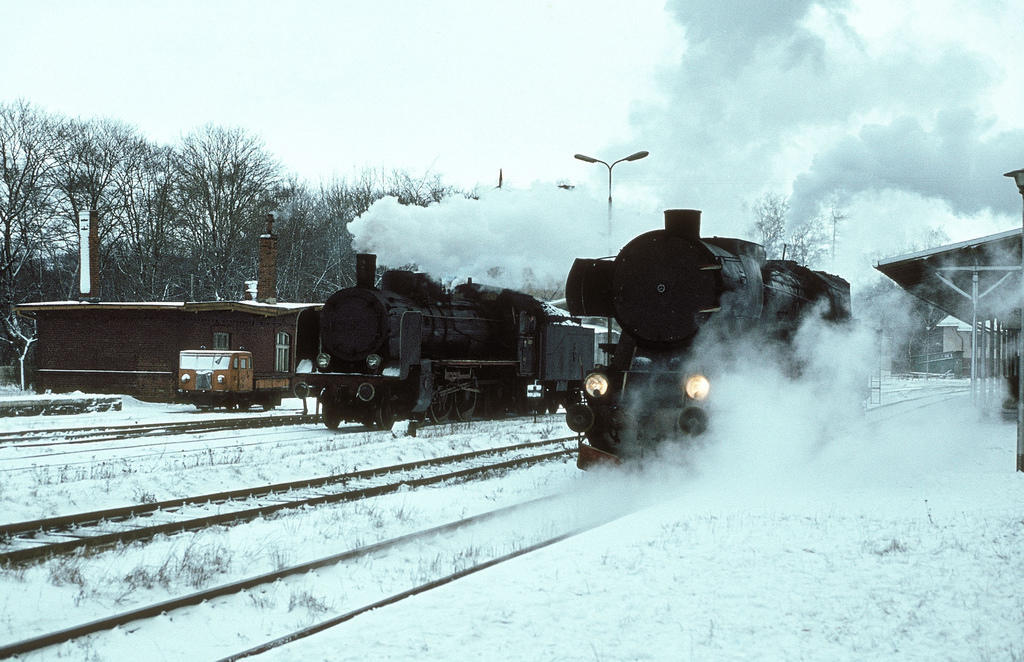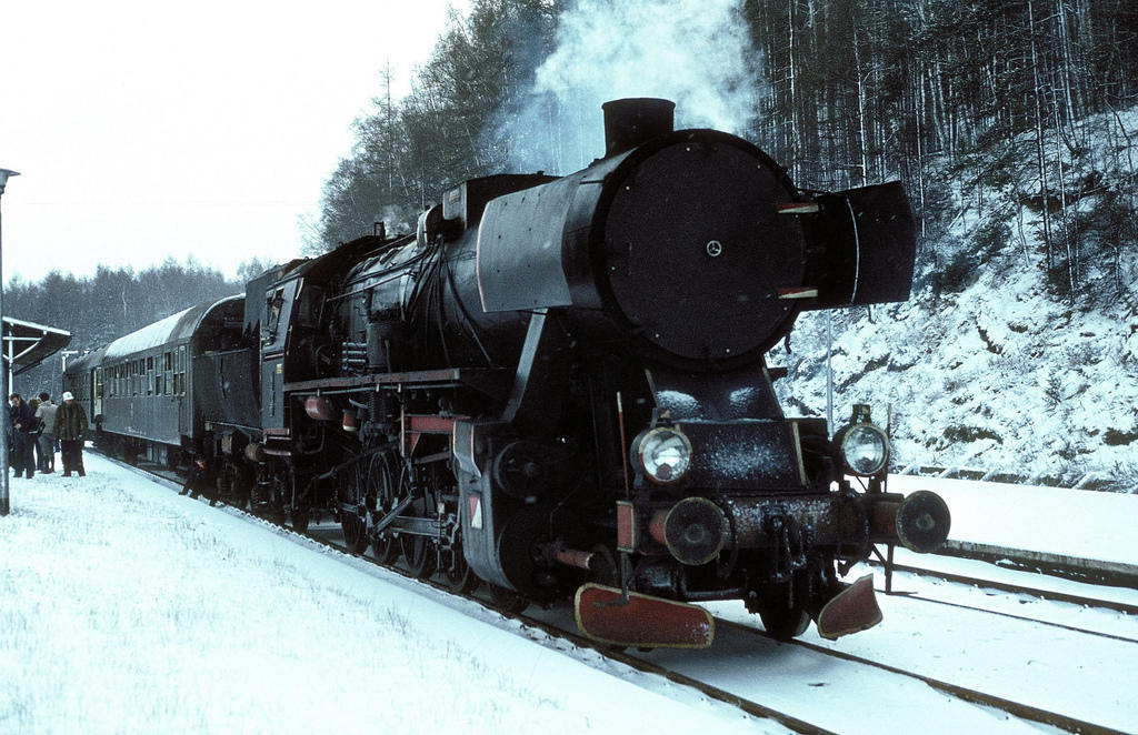 Ok1 (z lewej) i Ty2 (z prawej) czyli po prostu "Plandampf" na stacji Jedlina Zdrój w mroźny, styczniowy dzień. Z tego peronu odjeżdżały niegdyś składy do Świdnicy. Dzisiaj stacja ta jest jednym z wielu zamkniętych i zdewastowanych węzłów kolejowych, doprowadzonych do ruiny przez kolejnych rządzących, polska koleją po 1989 roku. Widok w kierunku południowo-wschodnim: Głuszyca/Kłodzko.