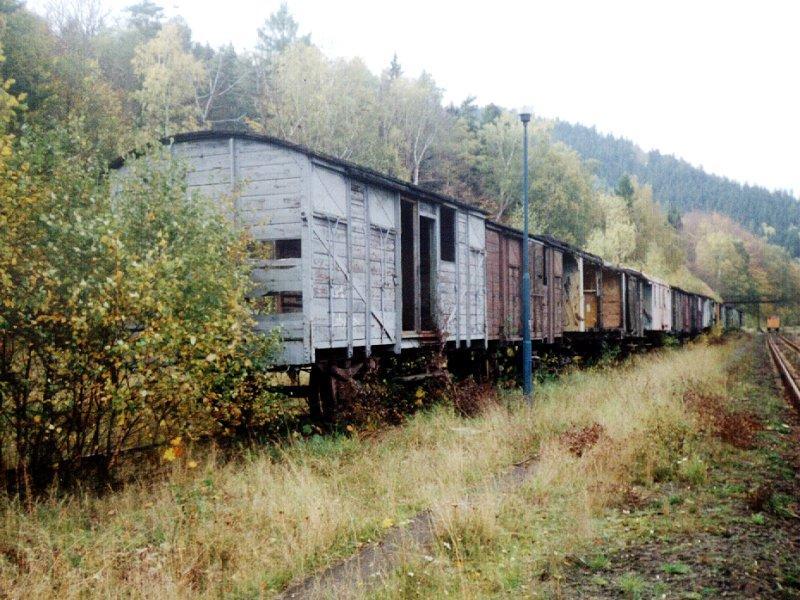 Odstawione wagony na torze nr 2. W tle most sygnałowy przy nastawni dysponującej. Widok w kierunku północno-zachodnim: Wałbrzych, Jugowice/Świdnica.