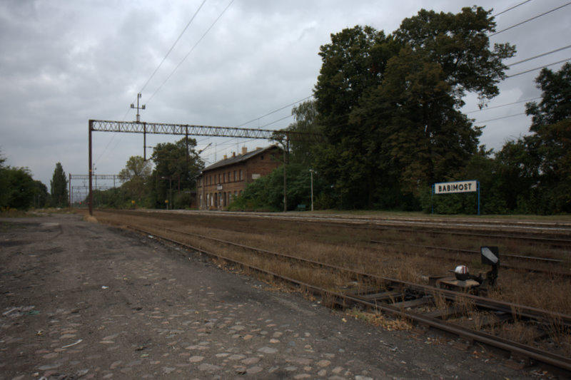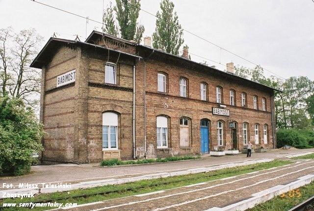 Stacja Babimost w dniu 11.08.1997. Gdy robiłem to zdjęcie, maszynista z mym pociągiem do Zielonej Góry czekał w peronach (za drzewami widoczna jednostka.