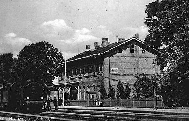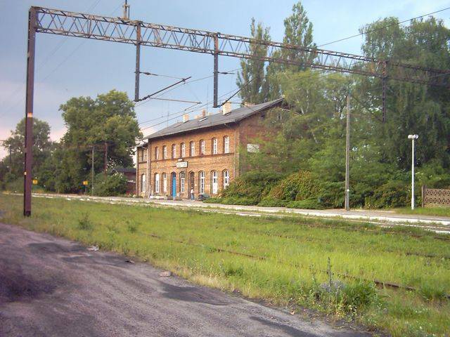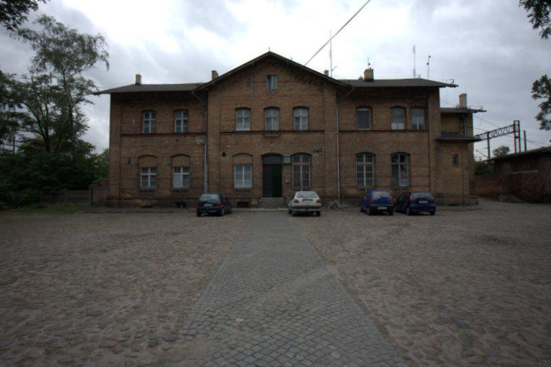 Widok na perony i budynek dworca od strony placu przeładunkowego i wjazdu z Sulechowa. Kierunek północno-wschodni.