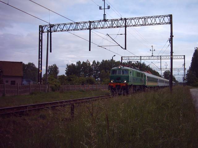 TLK Zielonogórzanin opuszcza stację Babimost (w stronę Zbąszynka).