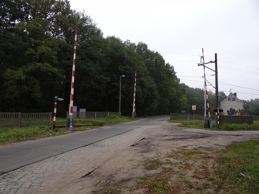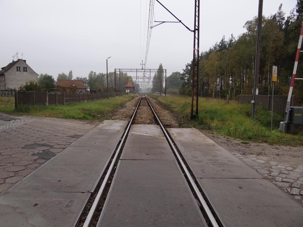 Przejazd drogowy w ciągu ulicy Leśnej. W oddali nastawnia dysponująca Bm. Widok w kierunku Sulechowa. 8,6 km.